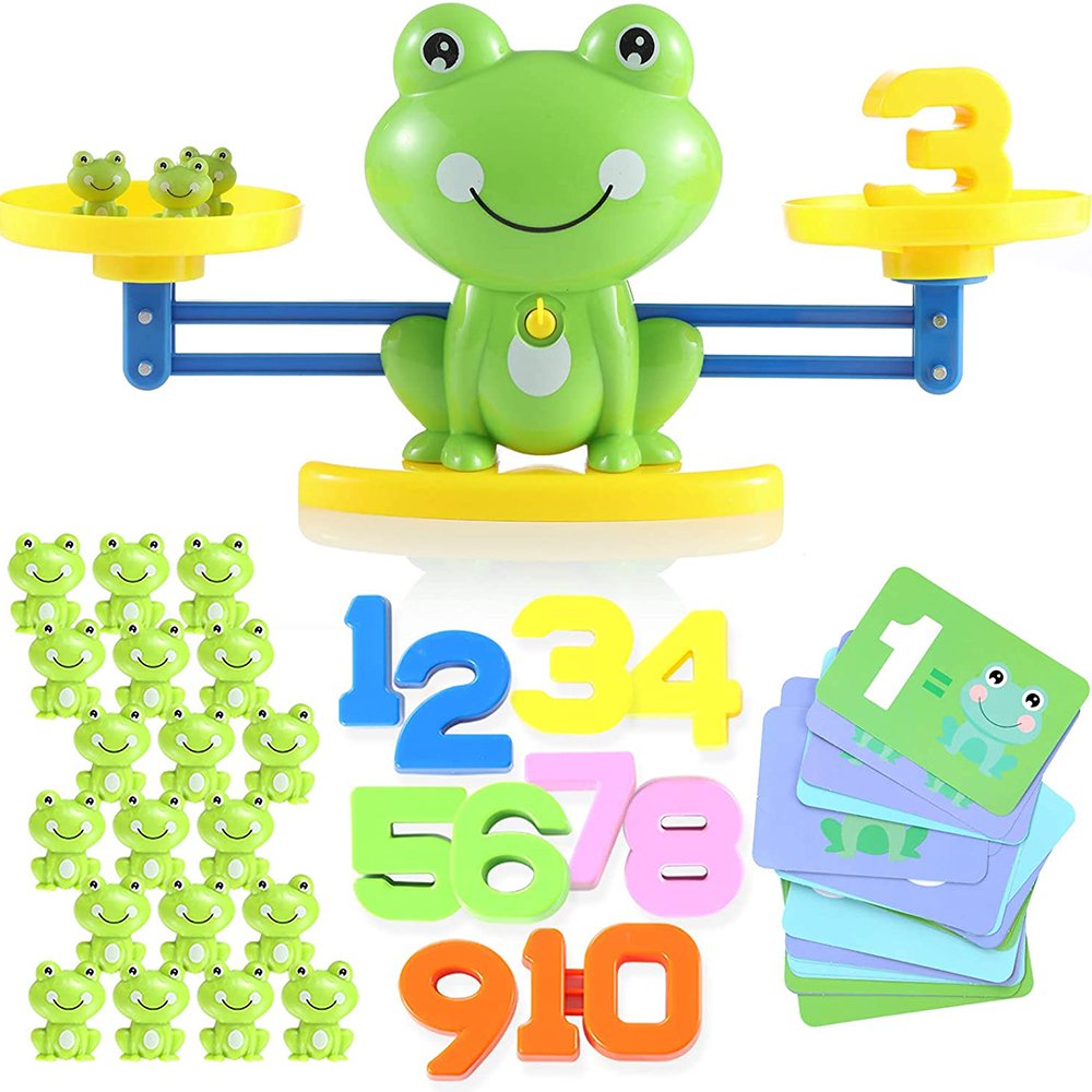 - ? ̄タミInnovative Math Toy】This counting balance toy specially designed to teach children counting and addition. they would fall in love with these little cute frogs at the first sight. It’s great help to teach basic math skills. and encourage kids to have more interest in math while making progress in the multi-level exciting math game.