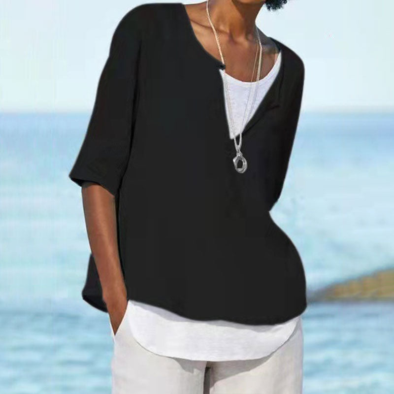 - Made of cotton. linen and polyester. this shirt is skin-friendly. soft and comfortable. stretchy. lightweight. breathable. and durable.