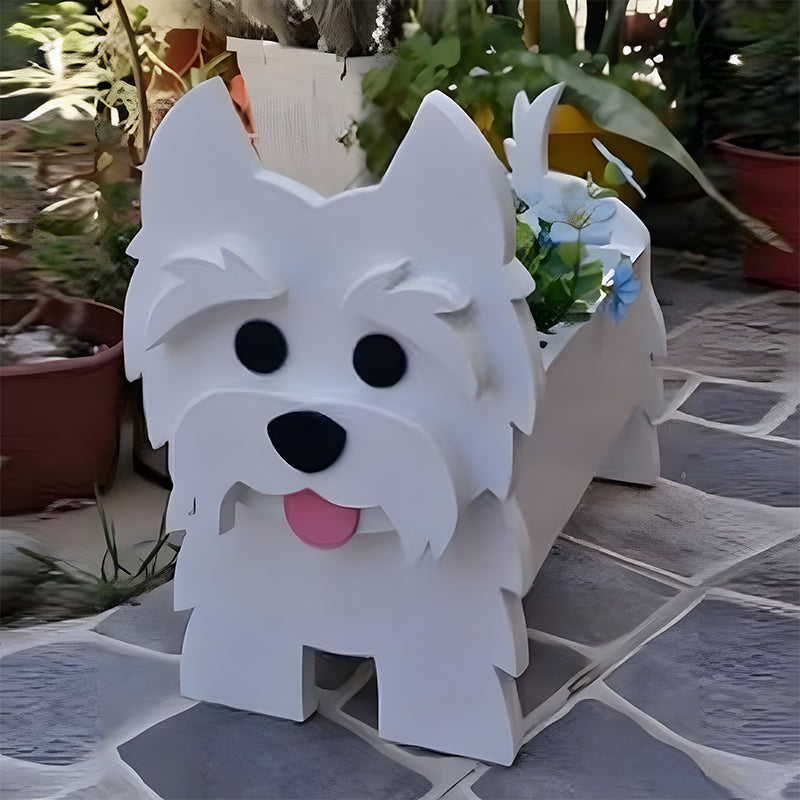 - This flowerpot is in the shape of a cute puppy each of which can be used as an attractive decoration in the home or office as well as a creative gift for family and friends. And they’re sure to love it. This handmade dog planter is a perfect addition to any dog loving home.