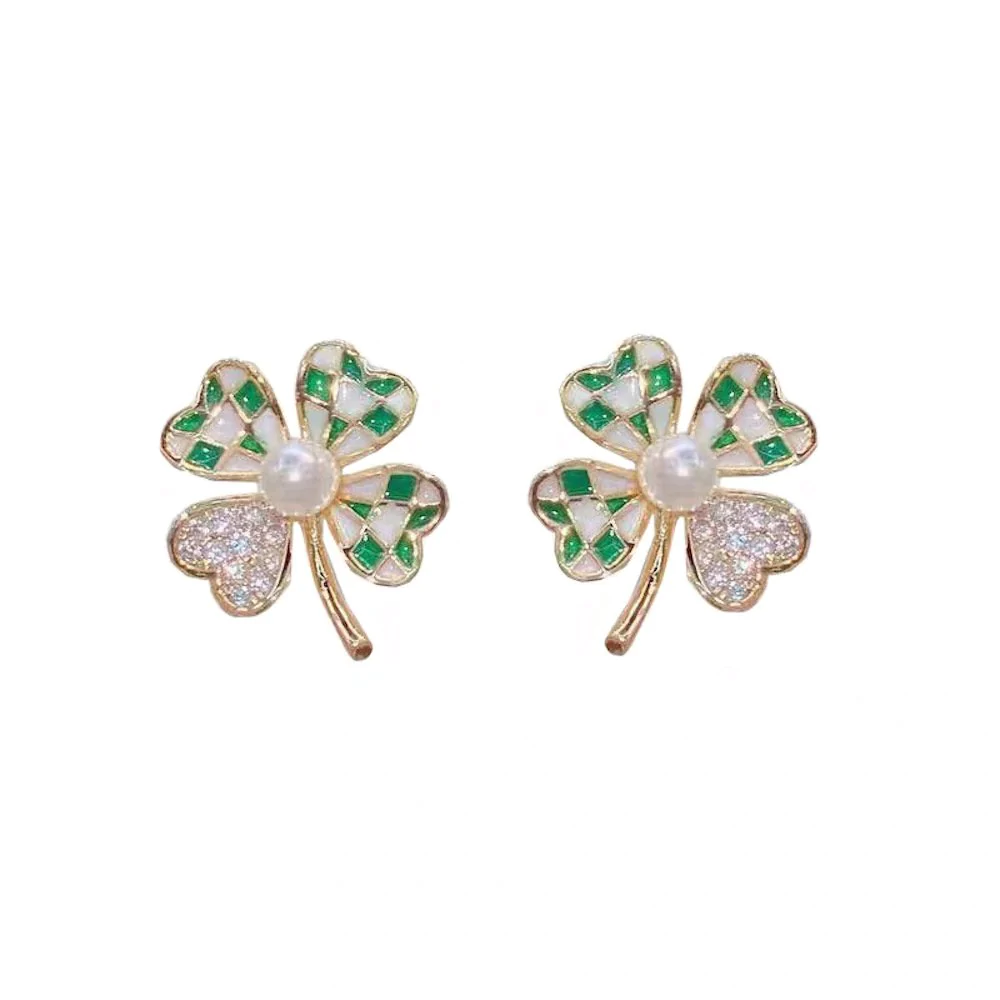 - 1/2*Green Checkerboard Four Leaf Clover Jewelry
