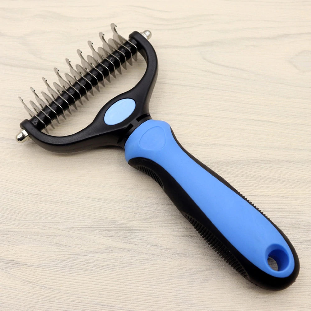 - Safer – The double-sided design is safer and will not scratch your pet’s skin. The outer teeth massage your pet and the inner teeth cut through tough knots for a smoother coat!