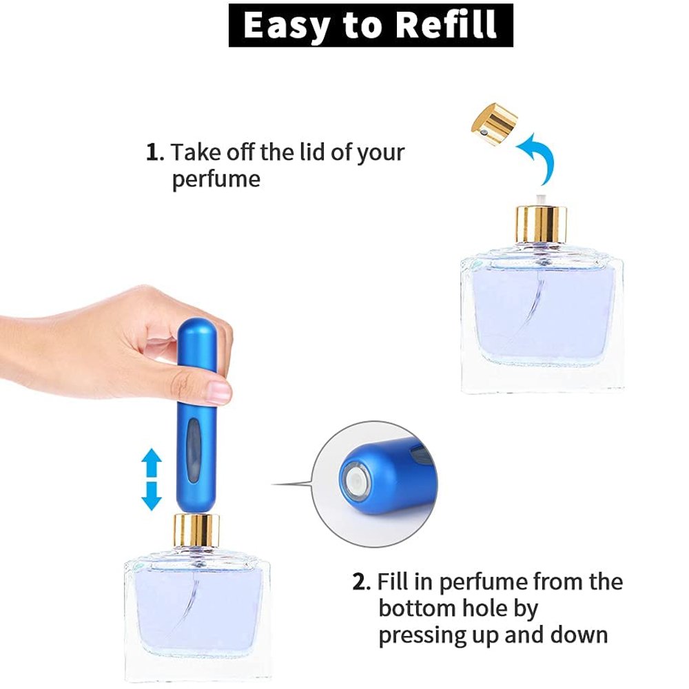 - 【Travel Size】 Its size is only 2.95*0.67 inches and the volume is 5 ml. It is made of aluminum. which is lightweight and durable. making it ideal for putting in a handbag or pocket.The ideal container to take a portion of your perfume and bring it everywhere without having to bring a large glass perfume bottle.