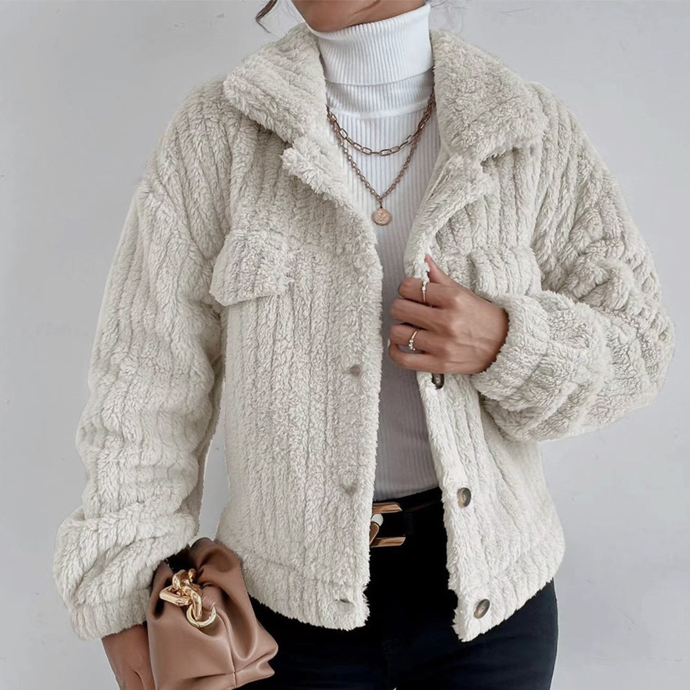 - Attractive Design: Plush design. button down. solid color. long sleeves. stand collar. fluffy surface. great fleece coat for your fashion show.